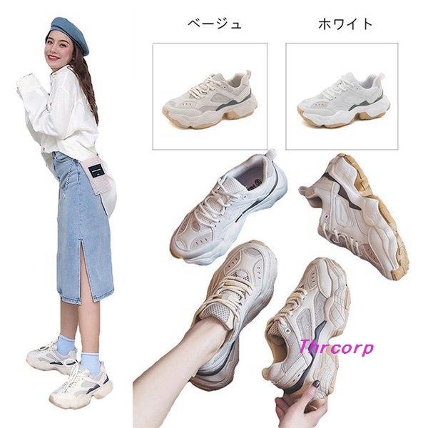 レディーススニーカー厚底シューズダッドスニーカー白スニーカー厚底靴ローカットスリッポンレースアップホワイトベージュ婦人靴ヒール4cm Buyee Servis Zakupok Tretim Licom Buyee Pokupajte Iz Yaponii